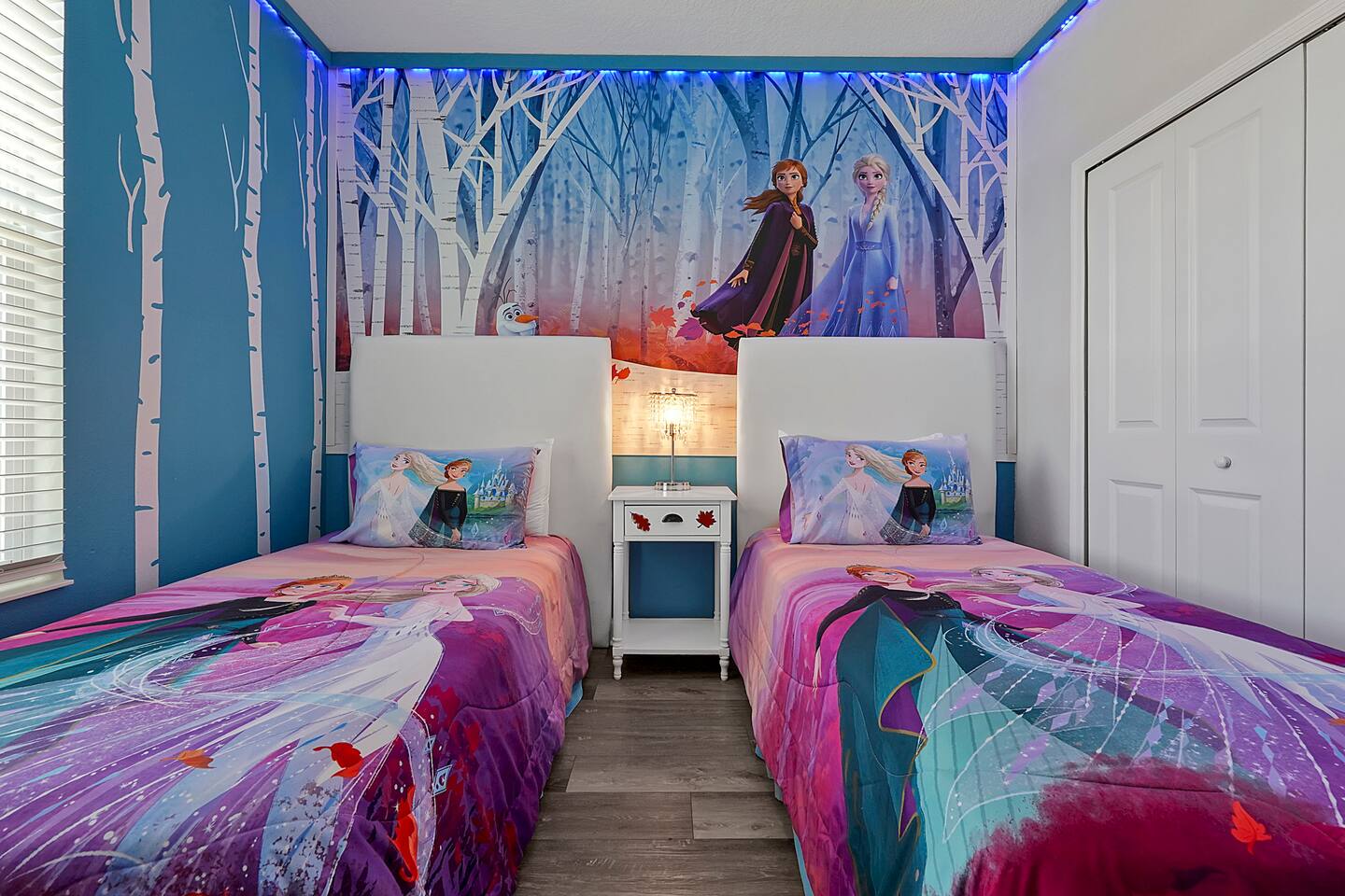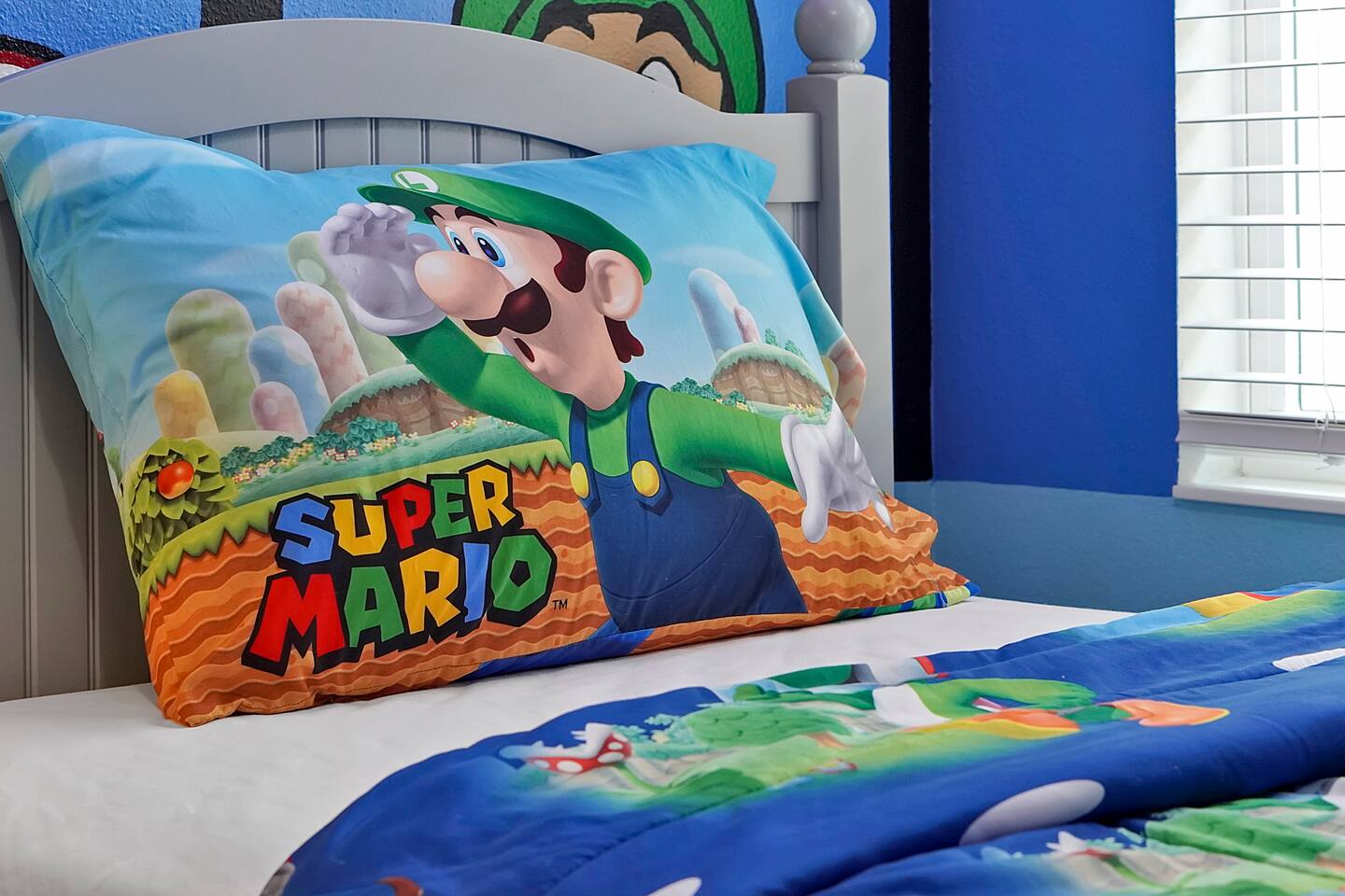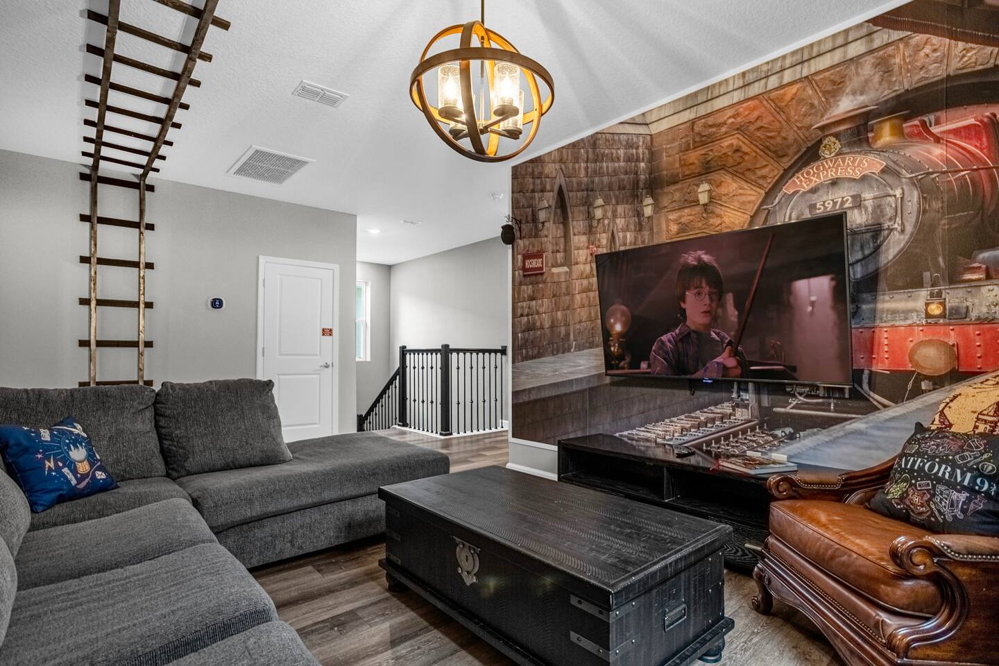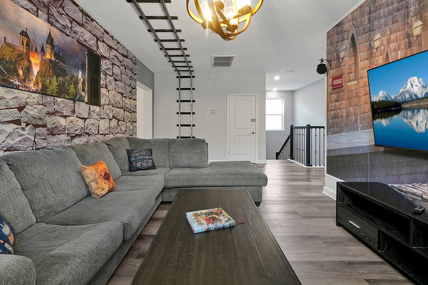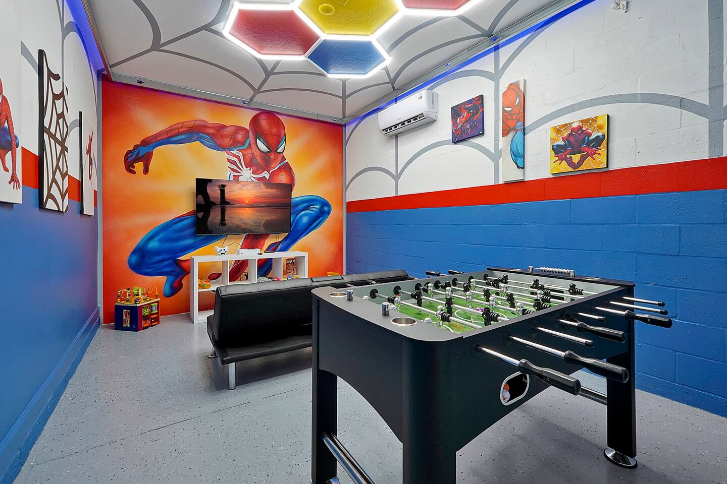 This stunning Storey Lake Resort Villa is the perfect getaway to relax and enjoy your time in Orlando, Florida. Just minutes to Disney World & within easy reach of attractions, shopping and dining. This immaculate & exceptional villa has a heated pool and spa (no additional charge) to relax in after a busy day at the parks. Family friendly featuring Super Mario & Frozen bedrooms, as well as three king size bedrooms, along with a Harry Potter themed movie loft & Spider-Man themed game room!