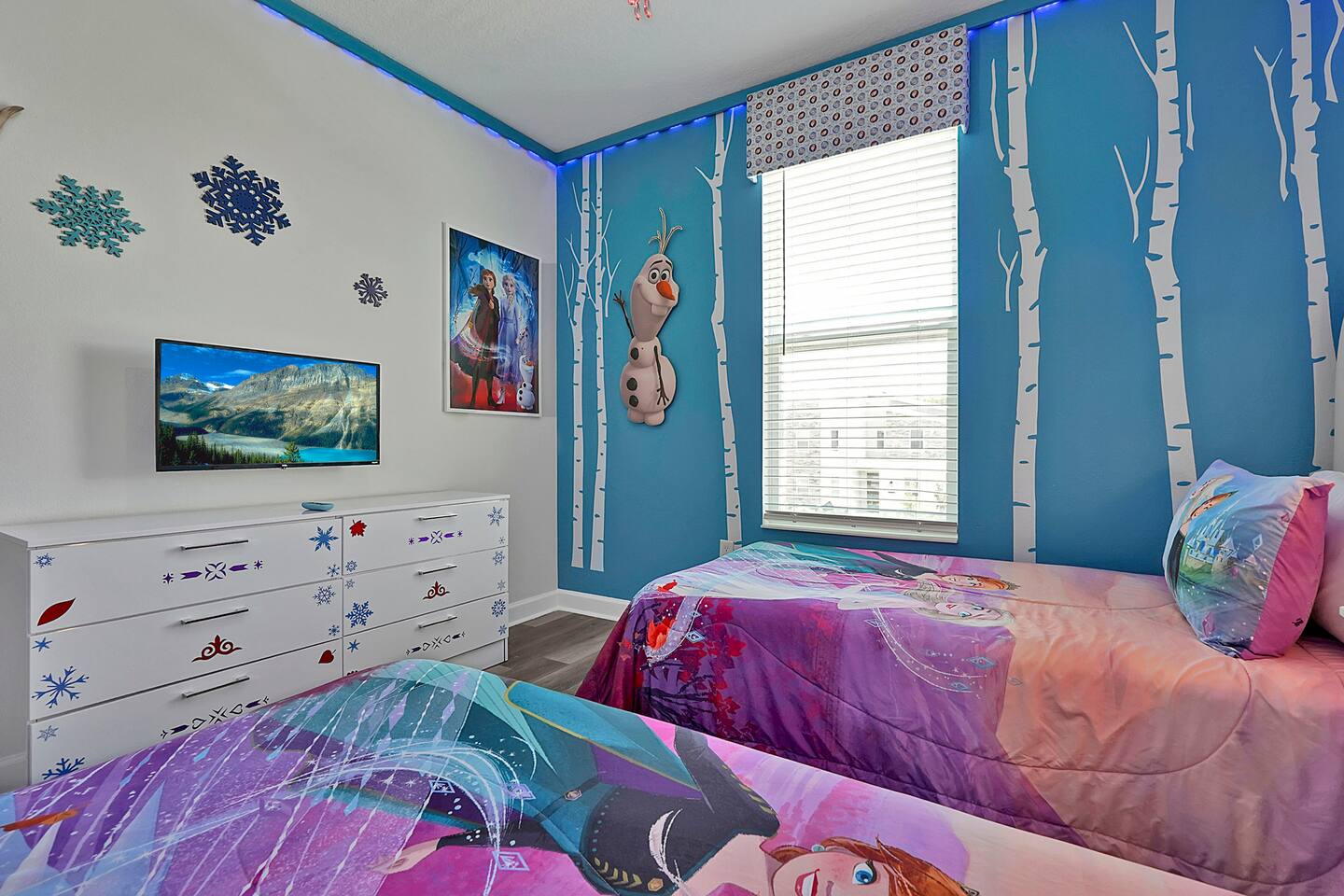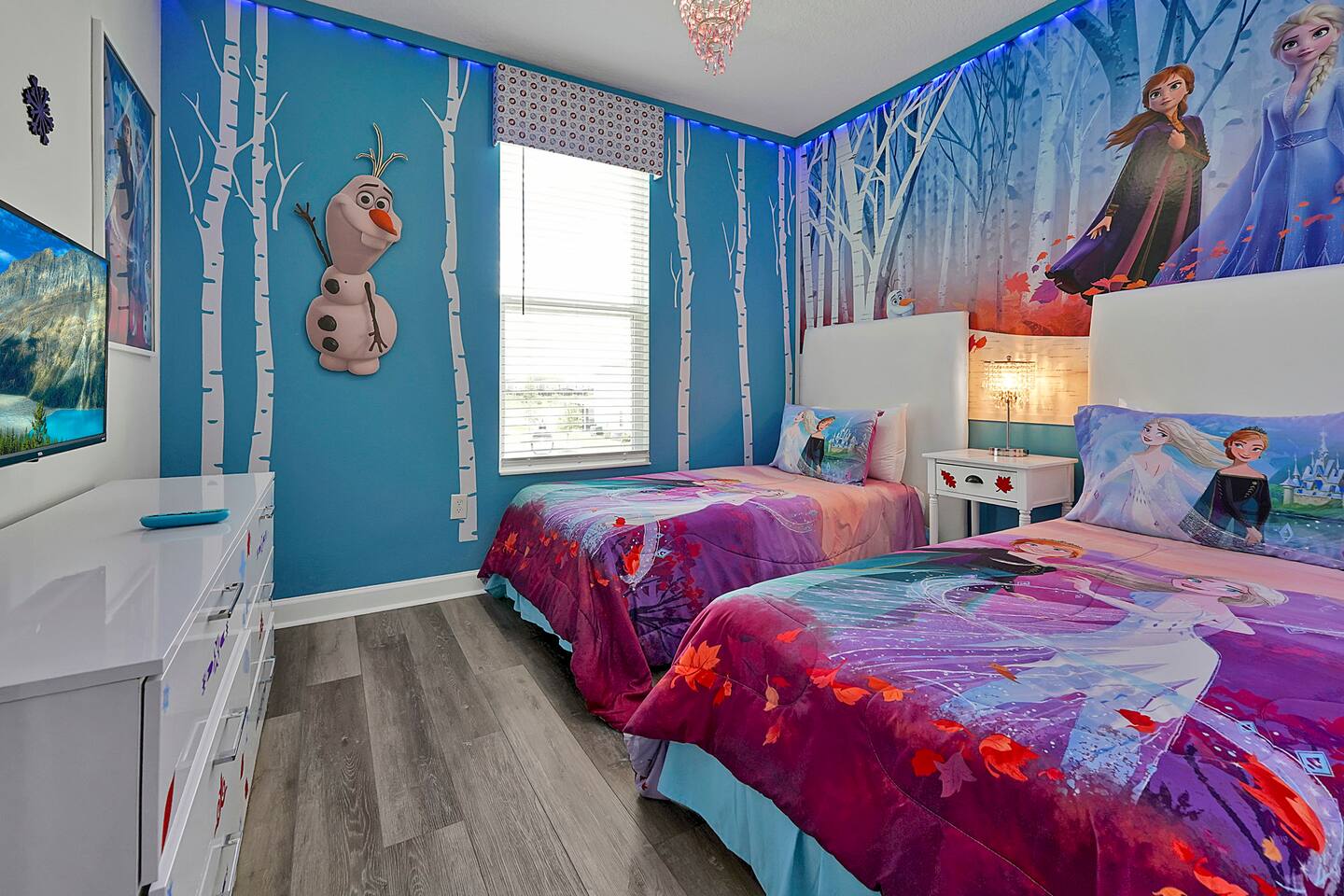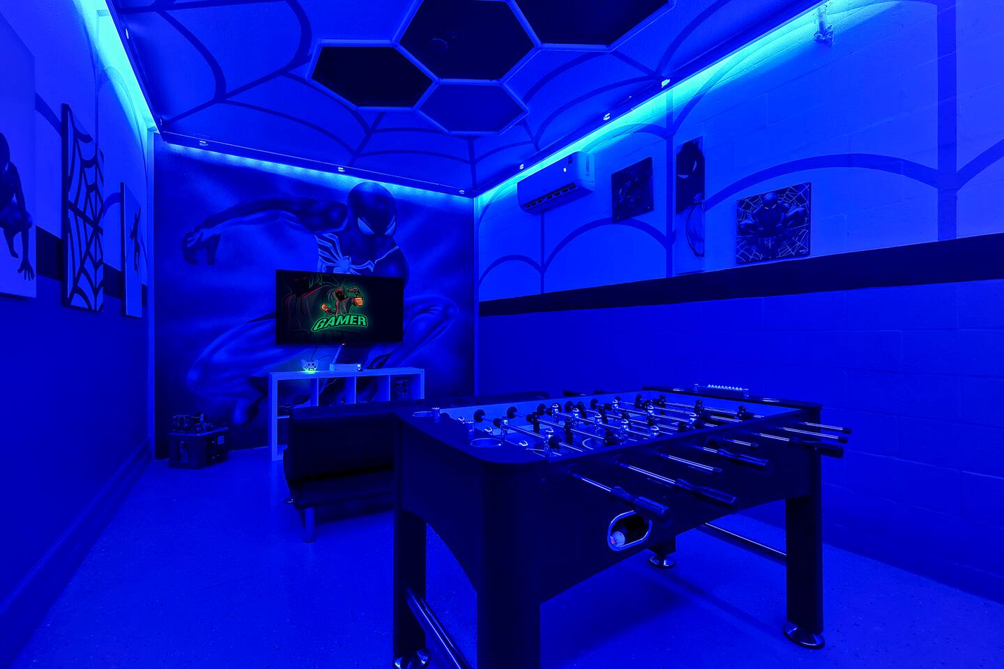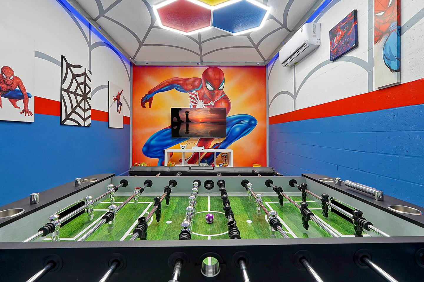 This stunning Storey Lake Resort Villa is the perfect getaway to relax and enjoy your time in Orlando, Florida. Just minutes to Disney World & within easy reach of attractions, shopping and dining. This immaculate & exceptional villa has a heated pool and spa (no additional charge) to relax in after a busy day at the parks. Family friendly featuring Super Mario & Frozen bedrooms, as well as three king size bedrooms, along with a Harry Potter themed movie loft & Spider-Man themed game room!
