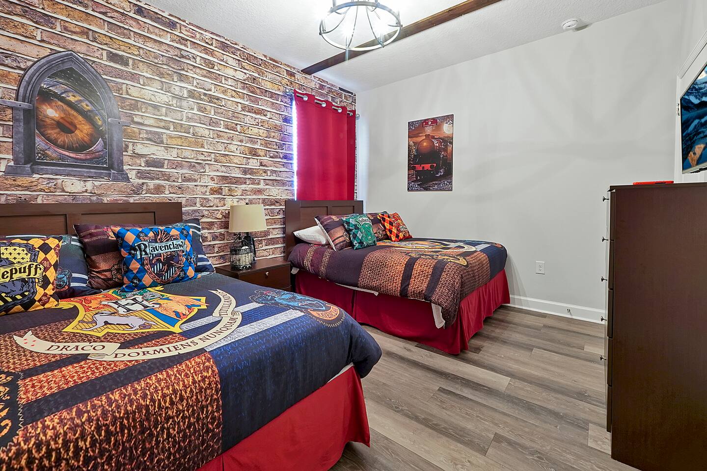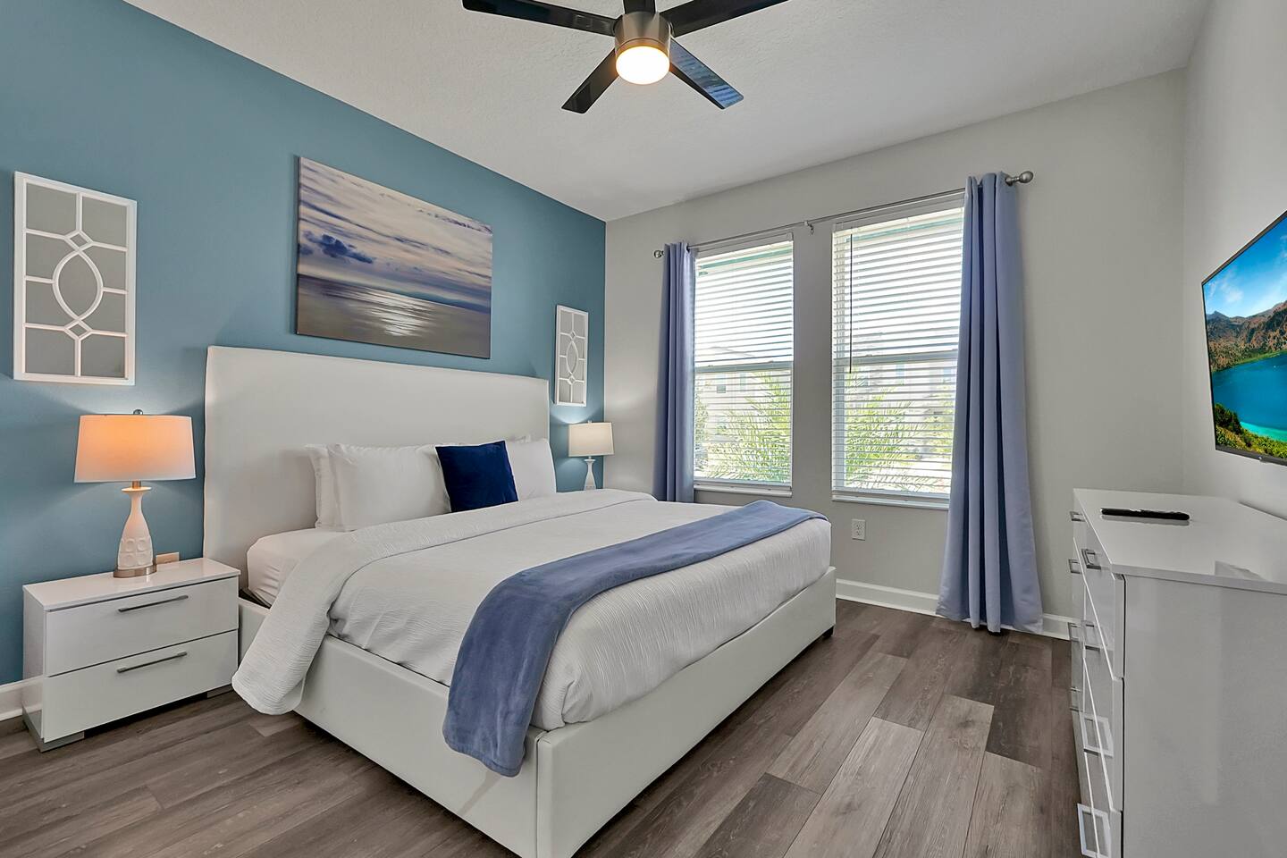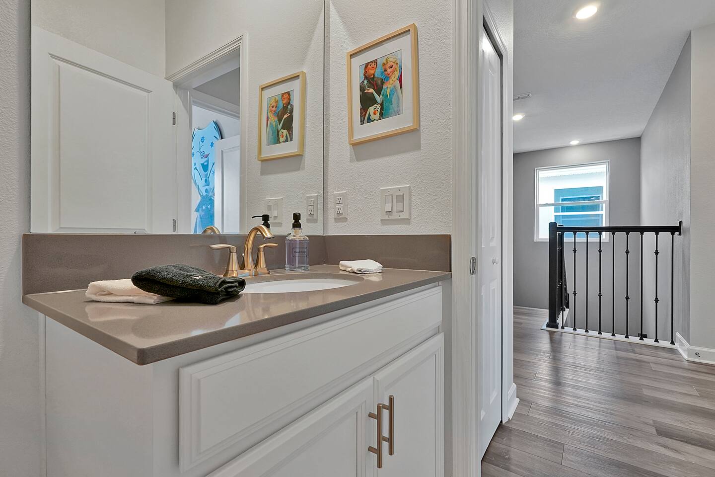 If you’re looking for a premium property and exceptional experience that your whole family is going love, here’s four reasons why we believe you’ll enjoy staying with us at Stargazer Villas: 1. The house will be super clean. We’re so fanatical about cleanliness that we even move the furniture to clean after every guest. And, solid floors in the bedrooms means no “mystery odor” absorbing carpet, either. 2. The house will be wonderfully comfortable. You’ll sleep on comfortable beds, the sheets will feel nice, the towels will be thick and you’re going to love our top-rated pillows! 3. Your stay includes a heated private pool as well as resort amenities. 4. We’ll be responsive. Your questions will get prompt responses from our dedicated team. We’ll treat you the way that we would want to be treated. 1st FLOOR: Blue Bedroom- King sized bed and smart TV Spider-Man Themed Game Room with Foosball table Modern Kitchen - Stainless appliances and stocked with the essentials for 12 people Dining Area with plenty of seating Chic Living Room with comfortable seating Full Hallway Bathroom Double washers & dryers, iron & ironing board Enclosed backyard with fenced pool & spa, outdoor seating, and grill use is available. 2nd FLOOR: Gray/Blue Primary Bedroom - King sized bed with private bathroom and smart TV. Tan Primary Suite - King sized bed with ensuite and smart TV. Harry Potter Themed Bedroom - 2 Double sized beds and smart TV. Super Mario Themed Bedroom – 2 Twin beds and smart TV. Harry Potter Themed Movie Loft with big smart TV. Frozen Themed Bedroom – 2 Twin beds and smart TV. 2 Full Hallway Bathrooms POOL & SPA: After a busy day, come home and relax in your heated pool and spa (facing north). Or, enjoy a nice dinner together by the pool at the comfortable outdoor dining set. STOREY LAKE RESORT, HIDEAWAY & BRONSON CLUBHOUSES Our super clean home is located in Storey Lake Resort, one of the newest and most sought after resort communities in the Central Florida area complete with gated access and a 24 hour security staff. Your vacation home includes full access to two clubhouses, the Hideaway Club and the newly built Bronson Club (both only a quick shuttle ride) featuring: HIDEAWAY CLUB: * Double water slide * Heater zero-entry main pool and lazy river * Spa * Water Slides: 36" height requirement * Children’s water park * State-of-the-art fitness center * Sand volleyball courts * Tiki bar with a great menu/drinks for poolside dining * Basketball court * Hammock garden / tropical walk * Restaurant and Bar * Ice-Cream Shop * 9-Hole Mini golf course (additional charge) * Kayak Rentals for the lake front (additional charge) * Private cabanas available for additional charge BRONSON CLUB: * Resort style heated swimming pool and lazy river * Spa * Music * Billiards, darts, and cards game room * Computer & media room * State of the art fitness center * Pirate themed playground * Basketball court * Restaurant and Bar * Private cabanas available for additional charge Resort Hours of Operations Clubhouse: 9 am - 9 pm Restaurant, Bar, Ice Cream Shop and Boat House: 10 am - 9 pm Fitness Center: 9 am - 9 pm Hours may change based on the season or unforeseen circumstances. **Individual charges may occur for extras Resort and club house amenities are subject to closure without any notice. We do not have any control over the Resort policies and cannot be held accountable.