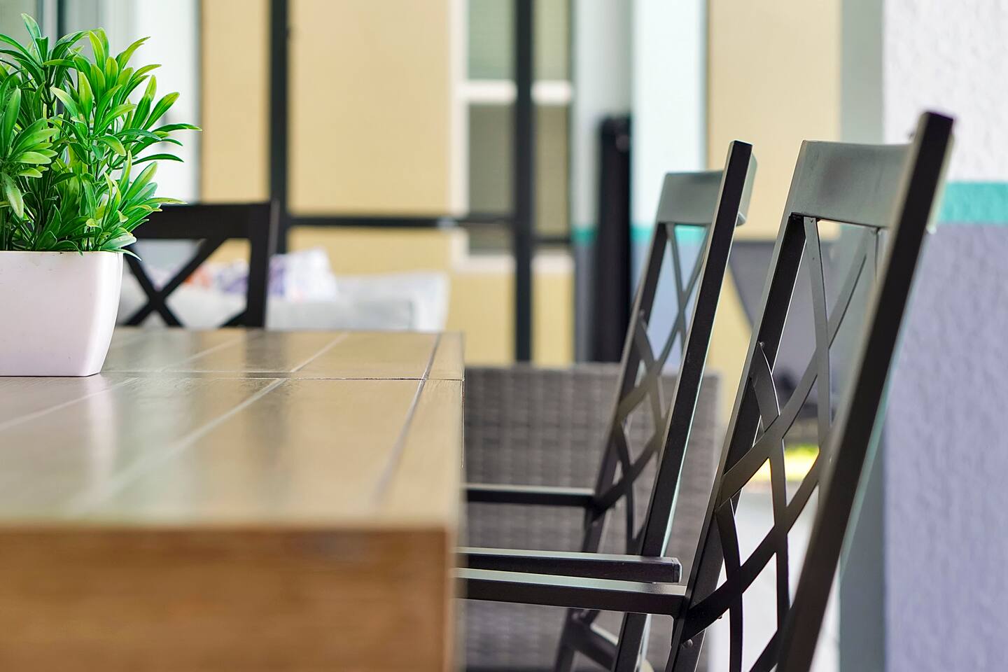 Our vacation home rental is self-catering. This means that we provide these items for your stay but that you'll need to supply whatever you need beyond what we supply below: • New dish sponge • Paper towels • Dish soap • Dish washing capsules • Trash bags • Laundry detergent & dryer sheets • Toilet paper • Bathroom essentials including bath towels, hair dryer, hand mirror, hand soap, body wash, shampoo & conditioner in each bathroom CLEANING FEE: The cleaning fee covers the basic cleaning of the villa. Please make every effort to leave the house as you found it. Our cleaning team will charge an additional fee which we’ll have to pass to you for any of the following: • Stained towels, bedsheets, bed and duvet covers, walls, furniture, or other items • Garbage pickup (garbage that is outside the trash can or trash bag) • Liquid or food spills • Any additional cleaning or treatment which delays the normal turnover of the house. TRASH PICKUP: • Trash pickup is daily • Have trash outside by 8am • Keep trash bench lid closed • All trash must be bagged and tied in 13-gallon kitchen bags and cannot weigh more than 30 lbs. • Grocery bags are not allowed • Loose trash will not be picked up. • No liquids are allowed. • Boxes need to be folded flat QUIET HOURS: The resort's quiet hours are from 10pm to 7am and all guests are expected to abide by them.If you wish to file a noise complaint, please see the troubleshooting page of the digital welcome book posted in the villa. GRILL: Propane Grill use is a $40 flat fee. Please request grill use prior to arrival for invoicing. Your safety is very important to us. By using the grill, you agree to abide by all grill rules posted by the grill. DELIVERIES: You can receive packages from UPS, Fedex and Amazon. The USPS does not deliver to the villa. You are able to receive food deliveries. Driver will show their ID and your order/the property address to guard at gate. WIFI: Spectrum wifi is available throughout the villa with internet speeds up to 500mbps. BABY ITEMS: We have your little ones covered as we have two pack'n plays, one high chair, one toddler step stool and two baby gates in the villa available for use. POOL & SPA: Please note: The pool’s thermostat is set to the American Red Cross recommended temperature range for leisurely swimming of 83-86° (28-30° C). You also have the option of being able to use the spa jets and set the spa temperature (up to 102° F, 39° C) independently from the pool. The pool pump and heater do not run during the resort’s mandated quiet hours of 10 PM - 7 AM. Your desired water temperature may not be achieved, especially in colder months. The heat will already be on when you arrive. The spa will need to have breaks in order for the pool filter and pump to run properly. **Because guest safety, especially that of children around water, is so important to us, we have additional safety features in place. Only one door leading to the pool area will open and that door is alarmed. Adults wishing to bypass that alarm can find the bypass button higher up on the wall by the patio door (inside & outside) and by pushing the button will have 15 seconds to open and close the door before alarm sounds. There's also a top latch lock on the door aside from the normal lock. We strongly recommend that if children are present that not only the pool fence remain locked when not swimming, but that the door lock and top latch remain in place. These features aren't meant to take the place of supervision, but have been put in place because we care about safety.** PARKING: Parking is limited to the driveway (please don't block sidewalk) and additional parking spaces can be found at either end of the street. No blocking sidewalks. No commercial vehicles, limousines, recreational vehicles, all-terrain, boats, or trailers may be kept on property. CAMERA: There is an external camera on the property for your safety and security of the property. The camera is a Ring doorbell at the front of the house mounted outside the front door. This camera records audio and video 24/7 when triggered by motion outside or use of doorbell. AIR CONDITIONING: A/C temperatures set between 68ºF-75ºF and set to Auto/Cool position. Any lower setting will cause the A/C unit to freeze up, resulting in considerable damage to the unit. Please ensure all doors and windows remain shut for equipment to function properly. NO ANIMALS: No pets or any type of animals allowed. A service animal must be communicated with Host prior to arrival and Guest agrees that any damage to the property (other than natural wear and tear) will be charged accordingly, per standard procedures for all Guests. INSPECTION: Prior to Guest checking in and upon check out, an inspection will take place in the home. We kindly request Guests to report to us in the event of any damages. If there is damage to the property (home or objects inside), the full cost to fix or replace the damaged is Guest’s responsibility. FINES: Parties are not permitted. Events/guests that exceed the home's maximum occupancy are not permitted. Smoking and vaping in home are not permitted. No marijuana use anywhere on property. No pets are permitted. Violations could result in a $1,000 fine plus extra cleaning / damage fees.