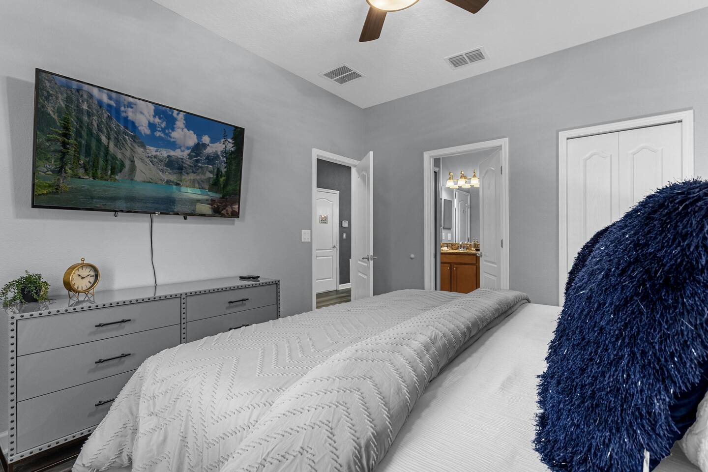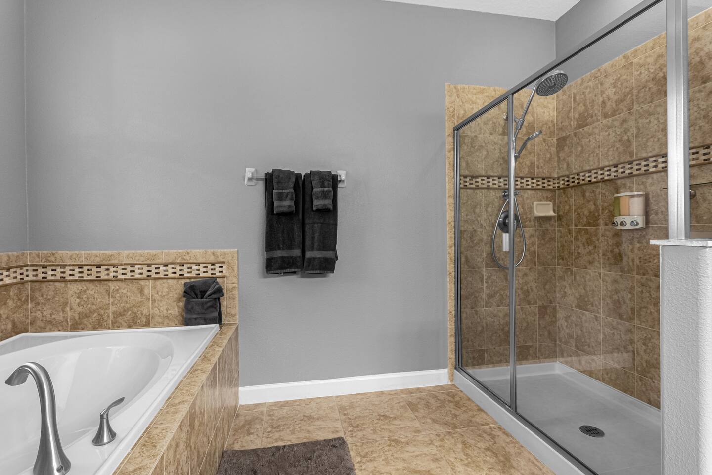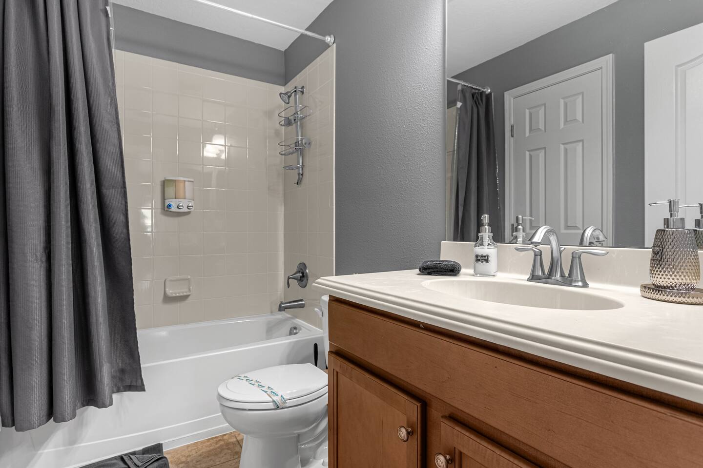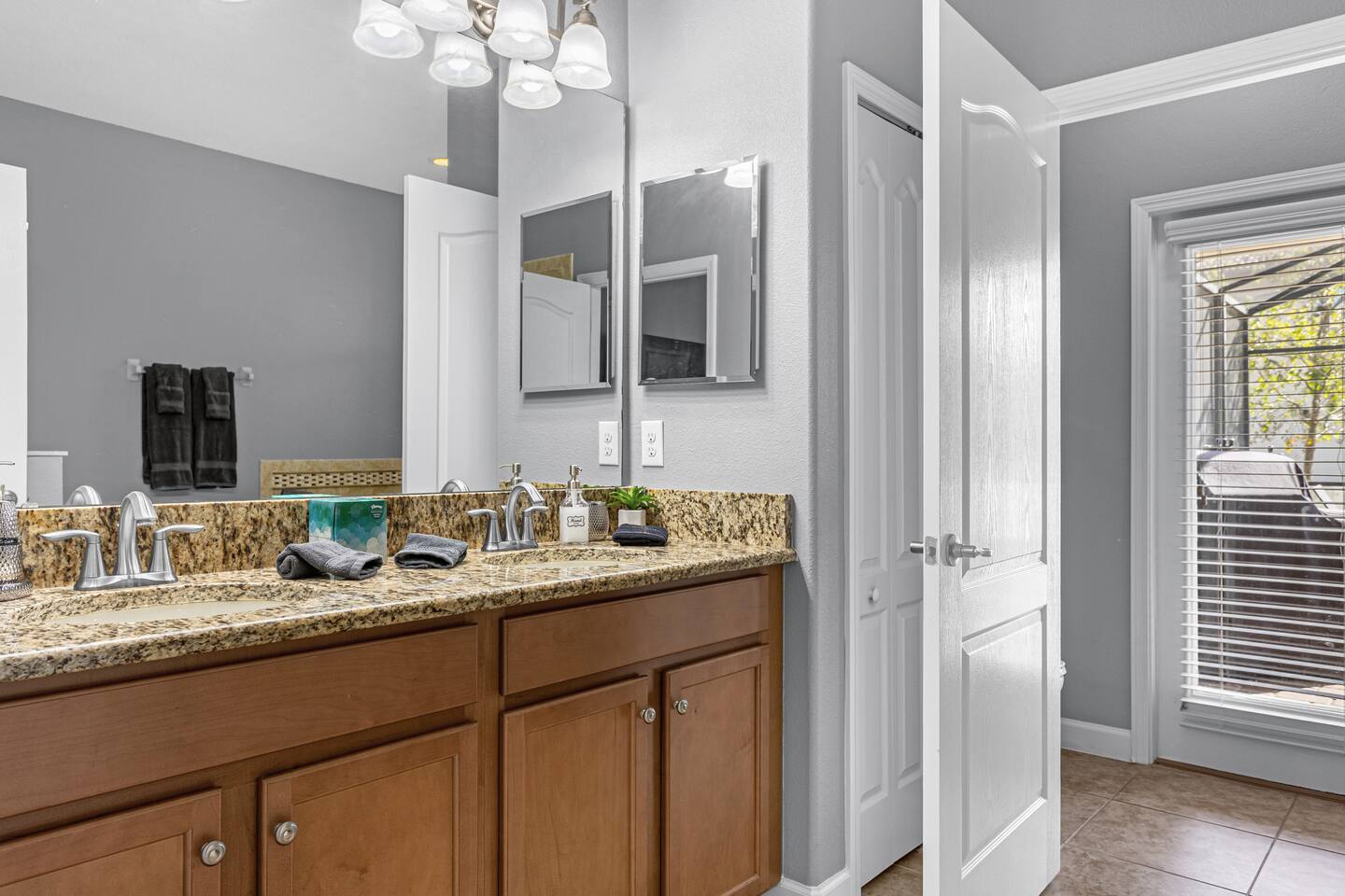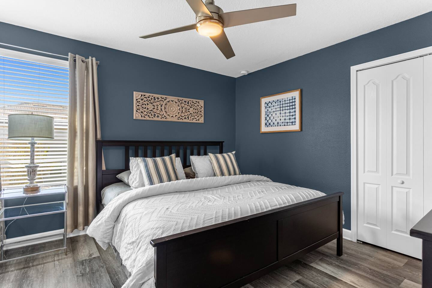 Our vacation home rental is self-catering. This means that we provide these items for your stay but that you'll need to supply whatever you need beyond what we supply below: • New dish sponge • Paper towels • Dish soap • Dish washing capsules • Trash bags • Laundry detergent & dryer sheets • Toilet paper • Bathroom essentials including bath towels, hair dryer, hand mirror, hand soap, body wash, shampoo & conditioner in each bathroom CLEANING FEE: The cleaning fee covers the basic cleaning of the villa. Please make every effort to leave the house as you found it. Our cleaning team will charge an additional fee which we’ll have to pass to you for any of the following: • Stained towels, bedsheets, bed and duvet covers, walls, furniture, or other items • Garbage pickup (garbage that is outside the trash can or trash bag) • Liquid or food spills • Any additional cleaning or treatment which delays the normal turnover of the house. TRASH PICKUP: • Trash pickup is daily • Have trash out in trash bench by 7am • Keep trash bench lid closed especially overnight • All trash must be bagged and tied in 13-gallon kitchen bags and cannot weigh more than 30 lbs. • Grocery bags are not allowed • Loose trash will not be picked up. • No liquids are allowed. • Boxes need to be folded flat QUIET HOURS: The resort's quiet hours are from 10pm to 7am and all guests are expected to abide by them. If you wish to file a noise complaint, please see the troubleshooting page of the digital welcome book posted in the villa. PRIVATE POOL: Please note: The pool’s thermostat is set to the American Red Cross recommended temperature range for leisurely swimming of 83-86° (28-30° C). The pool pump and heater do not run during the resort’s mandated quiet hours of 10 PM - 7 AM. Your desired water temperature may not be achieved, especially in colder months. The pool heat will already be on when you arrive. **Because guest safety, especially that of children around water, is so important to us, we have additional safety features in place. Only one door leading to the pool area will open and that door is alarmed. Adults wishing to bypass that alarm can find the bypass button higher up on the wall by the patio door (inside & outside) and by pushing the button will have 15 seconds to open and close the door before alarm sounds. There's also a top latch lock on the door aside from the normal lock. We strongly recommend that if children are present that not only the pool fence remain locked when not swimming, but that the door lock and top latch remain in place. These features aren't meant to take the place of supervision, but have been put in place because we care about safety.** GRILL: Propane Grill use is a $40 flat fee. Please request grill use prior to arrival for invoicing. Your safety is very important to us. By using the grill, you agree to abide by all grill rules posted by the grill. DELIVERIES: You can receive packages from UPS, Fedex and Amazon. The USPS does not deliver to the villa. You are able to receive food deliveries. Driver will show their ID and your order/the property address to guard at gate. WIFI: Spectrum wifi is available throughout the villa with internet speeds up to 500mbps. BABY ITEMS: We have your little ones covered as we have two pack'n plays, one high chair, one toddler step stool and two baby gates in the villa available for use. PARKING: Corner lot with room to park up to 4 cars. There's room for 2 cars in the driveway (please don't block sidewalk) and 2 more in front of the villa. No commercial vehicles, limousines, recreational vehicles, all-terrain, boats, or trailers may be kept on property. Please see parking info in Welcome Book. CAMERA: There is an external camera on the property for your safety and security of the property. The camera is a Ring doorbell at the front of the house mounted outside the front door. This camera records audio and video 24/7 when triggered by motion outside or use of doorbell. AIR CONDITIONING: A/C temperatures set between 68ºF-75ºF and set to Auto/Cool position. Any lower setting will cause the A/C unit to freeze up, resulting in considerable damage to the unit. Please ensure all doors and windows remain shut for equipment to function properly. NO ANIMALS: No pets or any type of animals allowed. A service animal must be communicated with Host prior to arrival and Guest agrees that any damage to the property (other than natural wear and tear) will be charged accordingly, per standard procedures for all Guests. INSPECTION: Prior to Guest checking in and upon check out, an inspection will take place in the home. We kindly request Guests to report to us in the event of any damages. If there is damage to the property (home or objects inside), the full cost to fix or replace the damaged is Guest’s responsibility. FINES: Parties are not permitted. Events/guests that exceed the home's maximum occupancy are not permitted. Smoking and vaping in home are not permitted. No marijuana use anywhere on property. No pets are permitted. Violations could result in a $1,000 fine plus extra cleaning / damage fees.
