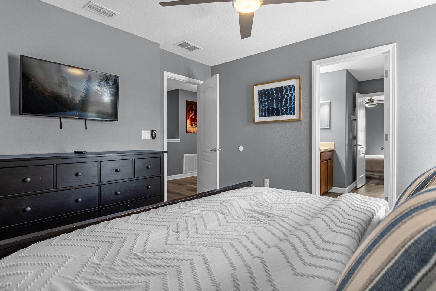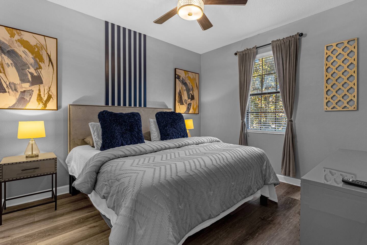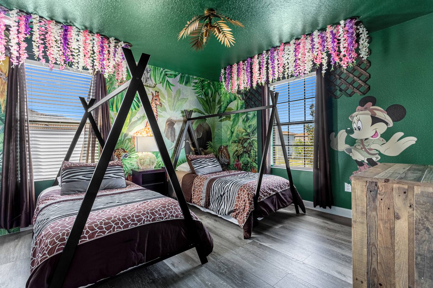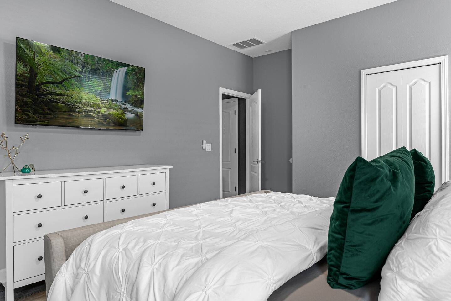 If you’re looking for a premium property and exceptional experience that your whole family is going love, here’s four reasons why we believe you’ll enjoy staying with us at Stargazer Villas: 1. The house will be super clean. We’re so fanatical about cleanliness that we even move the furniture to clean after every guest. And, solid floors in the bedrooms means no “mystery odor” absorbing carpet, either. 2. The house will be wonderfully comfortable. You’ll sleep on comfortable beds, the sheets will feel nice, the towels will be thick and you’re going to love our top-rated pillows! 3. Your stay includes a heated private pool as well as resort amenities. 4. We’ll be responsive. Your questions will get prompt responses from our dedicated team. We’ll treat you the way that we would want to be treated. 1st FLOOR: Master Bedroom (Blue& Gray) - King sized bed, connected and shared full bathroom, with 60” TV Master Bedroom Suite (Green) - King sized bed, connected private bathroom, and 55” TV Harry Potter Game Room - Pool table, X-Box, Ping Pong Table, and 65” Smart TV (Air Conditioned) Kitchen - New stainless steel appliances and stocked with the basics for 16 people plus 5 barstools. Dining Area - Seating for 10 people. 2nd FLOOR: Queen Bedroom (Burgundy) - Queen sized bed and 42” TV with connected/shared full bathroom. Frozen Bedroom - 2 twin sized beds, color changing LED lights, 32” TV, with connecting/shared bathroom Guardians of the Galaxy Bedroom - 2 Queen sized beds, color changing LED lights, and 42” TV. Mickey Characters Safari Bedroom - 2 twin sized beds, and 42” TV. King Bedroom (Blue) - King sized bed, 42” TV with connected/shared full bathroom. Queen Bedroom (Blue/Gray) - Queen sized bed, 42” TV with connected/shared full bathroom. Lilo & Stitch Bedroom - 2 Twin sized beds, and color changing LED lights. Star Wars Movie Loft - leather recliners, color changing LED lights, and color immersive 75” Smart TV. Double washers & dryers, iron & ironing board. Full bathroom PRIVATE POOL: After a busy day, come home and relax in your heated pool (which faces East). Or, enjoy a nice dinner together by the pool under the covered patio with comfortable outdoor dining set. We provide pool towels. CHAMPIONS GATE RESORT - OASIS CLUBHOUSE & RETREAT CLUBHOUSE: Our home is located in central Florida's iconic gated community, Champions Gate Resort, one of the largest resort communities in the area complete with gate access and 24 hour security staff. Your vacation home includes access to the Oasis Club Amenities featuring: • Resort Style Heated Pool with Water Slide • Spa • Zero Entry Heated Lazy River • Interactive Splash Zone for kids • Full-ServiceTiki Bar • Sand Volleyball Courts • Tennis Center: Stadium Court - (6) Tennis Courts • State -of -the -Art Fitness Center • Locker Rooms • Movie Theatre • Arcade Game Room • Kids Activity Center • Business Center • Multiple Common Areas • Grill Room Restaurant & Bar **Private cabanas available for additional charge** You also have access to Retreat Club Amenities featuring: • Water slides (40" height requirement single rider) • Zero Entry Heated Pool • Interactive Splash Pad • Mini Golf • Hammocks • Restaurant • Sundries Shop **Additional charges for use of the golf course, private cabanas, restaurant and bar. Rentals are first come first serve** Resort and club house amenities are subject to closure without any notice. We do not have any control over the Resort policies and cannot be held accountable.