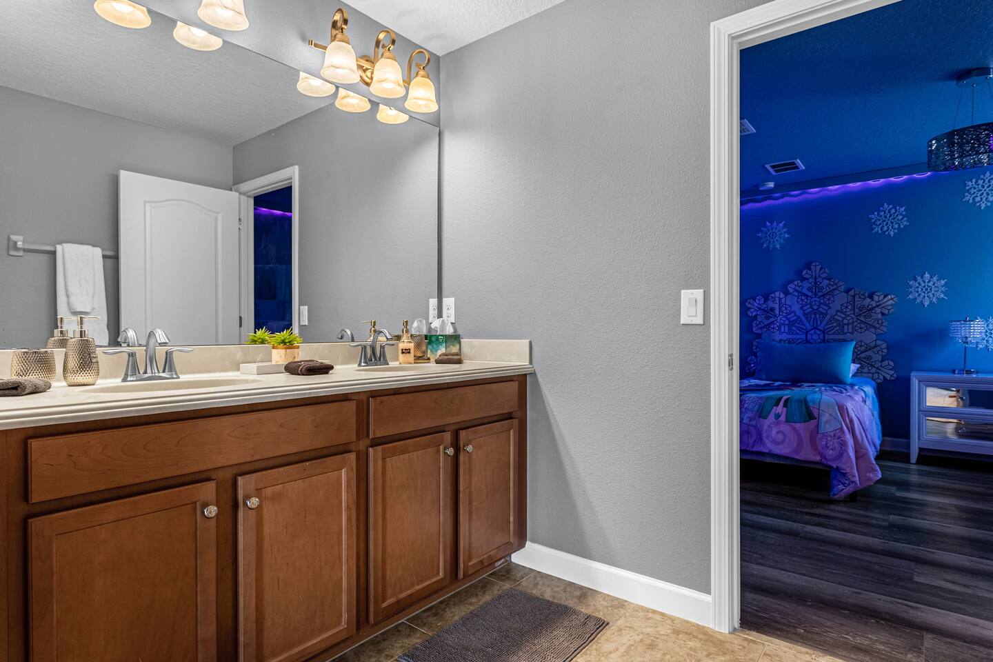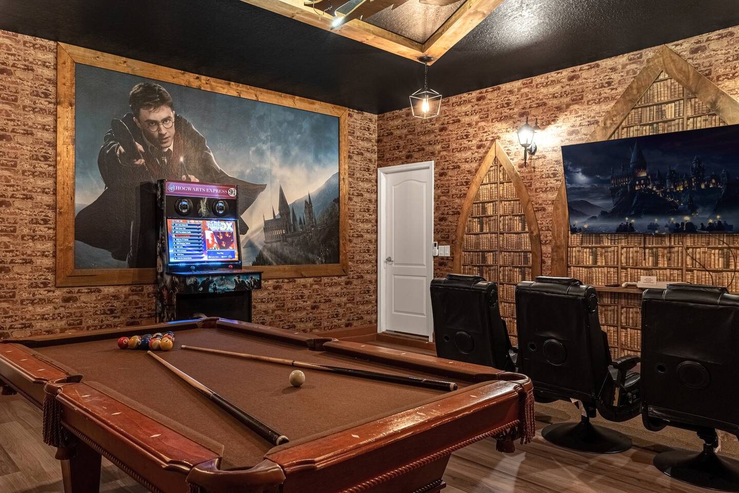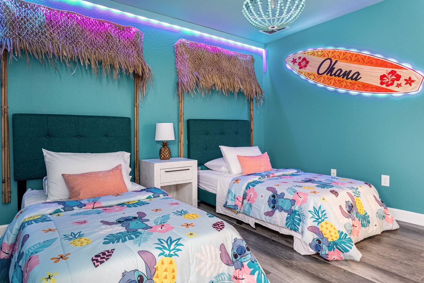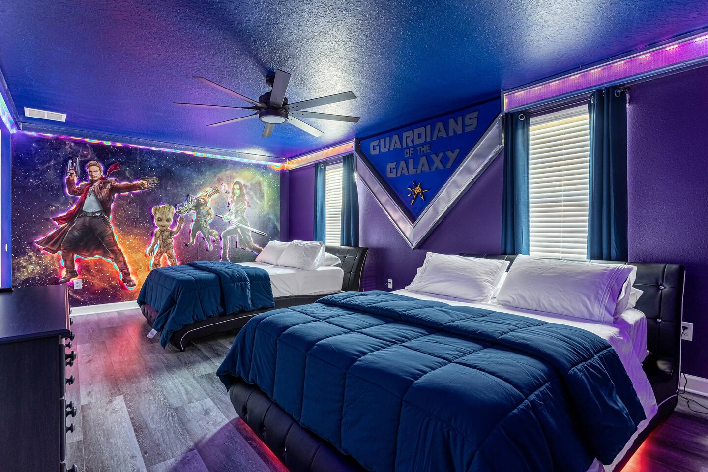 9BR Stargazer Villas Guest Favorite! Your family will love this vacation home in Champions Gate Resort just outside Orlando! Occupancy up to 16 beautifully decorated masterpiece. A short drive to Disney Magic Kingdom and close to attractions, shopping and dining. This villa has a heated pool (no extra charge) to relax in after a day at the parks. Themed rooms featuring Frozen, Guardians of the Galaxy, and Lilo & Stitch bedrooms as well as two primary suites & full size Harry Potter game room!
